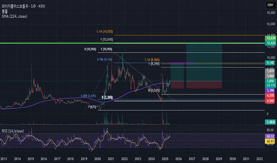 중장기 스윙 관점으로는 피보확장 1:1 부근 TP 12500원 ~ 자유 익절