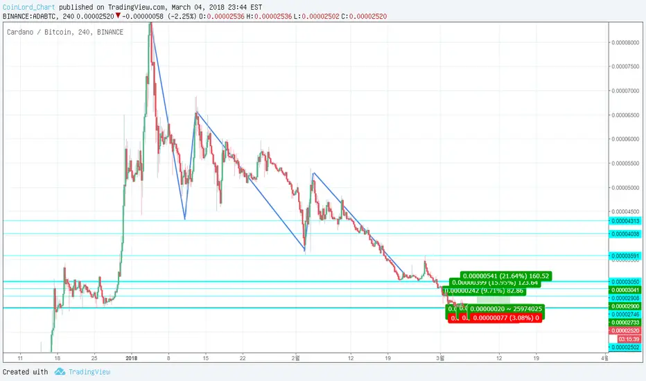 예상대로 앞으로 ADA/BTC의 가격이 상승한다면 전략에 따라 매도를 잘 하시길 바랍니다.