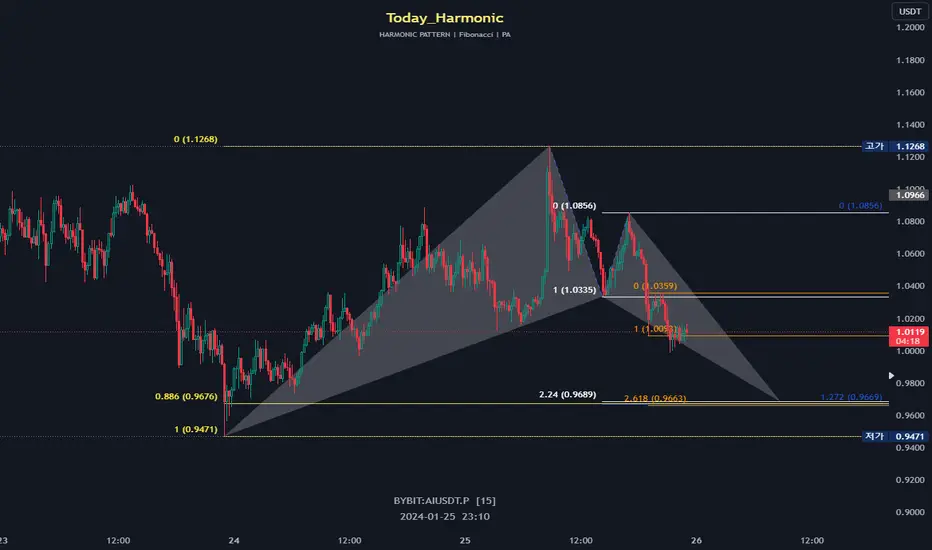 피보나치 0.886은 하모닉 패턴 중 뱃 패턴의 PRZ(가격 반전 지역) 입니다. 현재 가격이 피보나치 0.886까지 도달할 수 있는 가능성을 시사합니다.