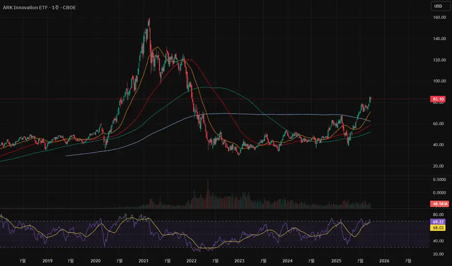 평소에 돈나무(캐시우드)를 알고 있었지만 운용사에는 관심이 없어서 딱히 찾아보지 않았는데, 이번에 유튜브 보다가 ARKK 이야기를 접하고 '차트 한번 봐야곘다' 라는 생각이 들어서 보게 됐는데 나쁘지 않은 것 같더라구요. 두서 없을 수 있지만 그 생각에 대해 적어 보겠습니다.