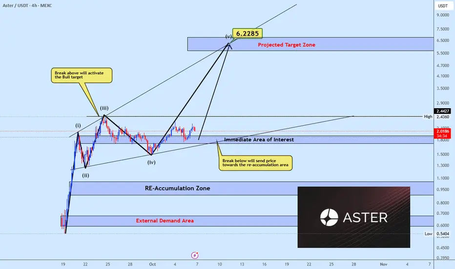 The Price structure on ASTER is completing a potential Leading Diagonal pattern for Wave (I), a structure that typically marks the end of an early impulsive phase and the start of a much larger trend. The chart suggests we’re in the final wave of this formation, with market compression signaling an explosive move ahead.