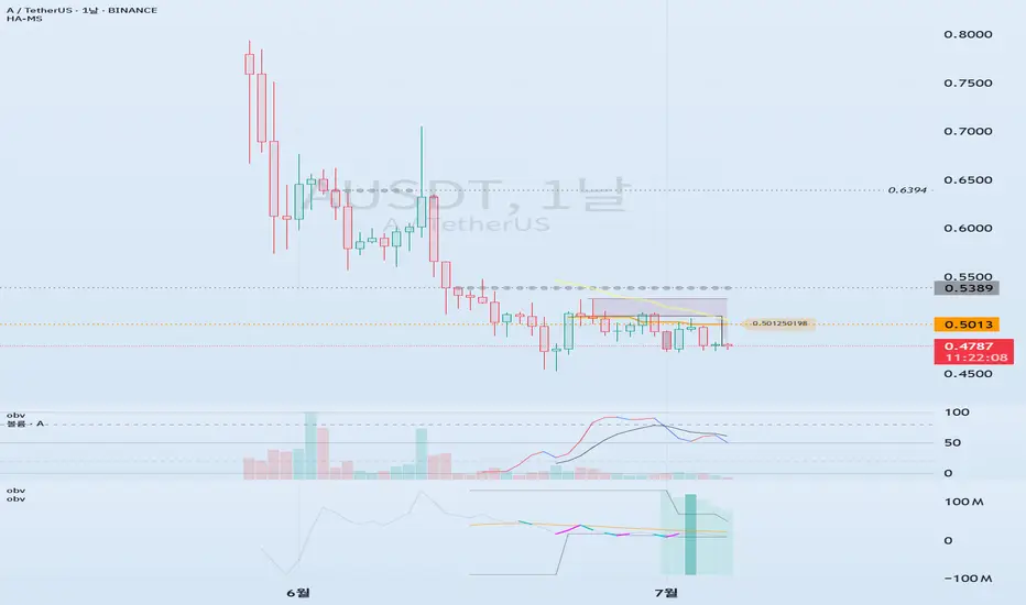 다만, 1D 차트의 M-Signal 지표가 0.5013 부근을 지나가고 있기 때문에 이 부근과 0.5389 부근에 형성된 매물대(volume profile) 구간을 어떻게 상승하게 될지가 중요합니다.