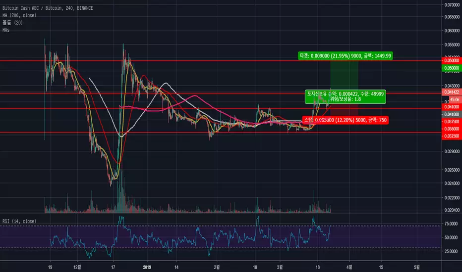 저항을 강하게 뚫은 후 지지를 해주면서 상승 3파가 진행중인 것으로 보이며, 현재 시점에서 목표가는 0.05 정도로 잡아볼 수 있겠습니다.