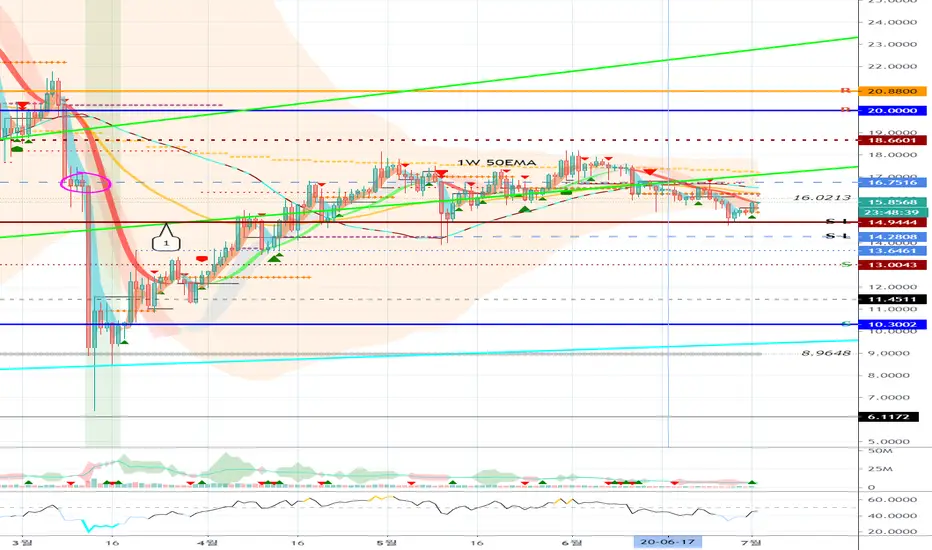 중요 지점인 14.9444 지점을 지지하고 상승 중 입니다.