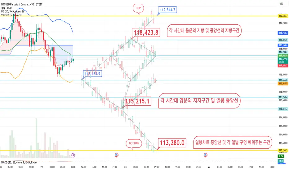 22일 화요일 비트코인 오전 관점을 보면 116,563 구간의 쌍바닥 기준