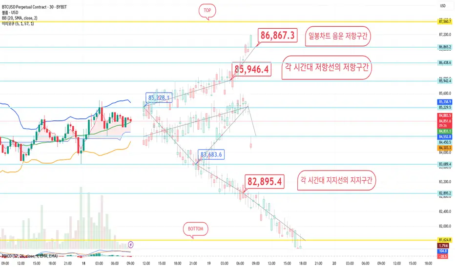 비트코인이 85,228 저항구간까지 도달 후 상승 하지 못한다면 하단에 지지구간을