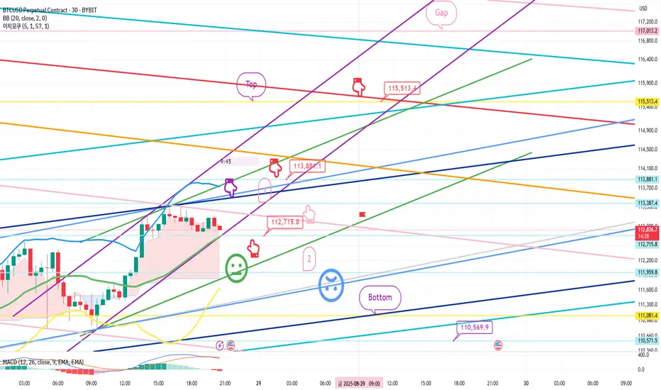 빨간색 손가락112,715.8불 롱포지션 진입구간 / 초록색지지선 이탈시 손절가