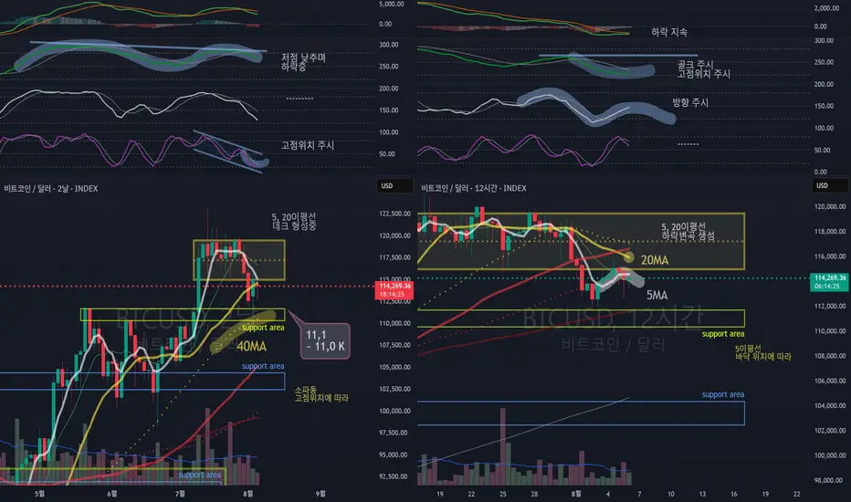 중파동 - 현재 상승 중 이지만 캔들이 5이평선의 하단에 지속적으로 위치 하게되면 고점 낮추는 하락파동 컨펌으로 전고점 구간 (11,1 ~ 11,0 K) 붕괴 위험성.