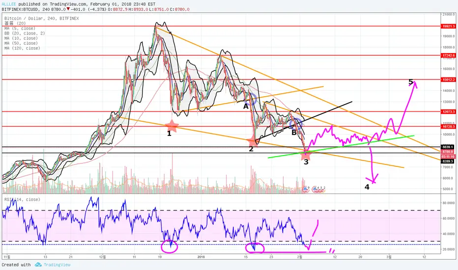- 3번 구간 8500선 에서 혹은 그 아래 작은 오차 부근에서 밑꼬리를 달고 말아올리는 모습을 나타낼것으로 예상되어집니다.