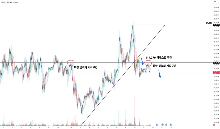 119,370달러를 명확히 돌파하기 전까지는 무리한 롱 진입 자제