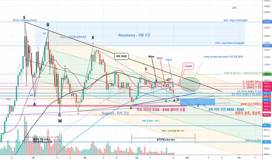 3차 지지구간 상단을 지지하고 단기간 튀어올랐고, 빗파기준 9765 부근을 하방 이탈 했다가 재차 위로 올라오며 저점을 높이며 수렴하는 액션을 취하고 있습니다. 이는 이번 수렴 국면에서 여러번 나타났습니다.9765에 수평선 긋고 이전 지점을 체크해보시면 대략 아실 것입니다.