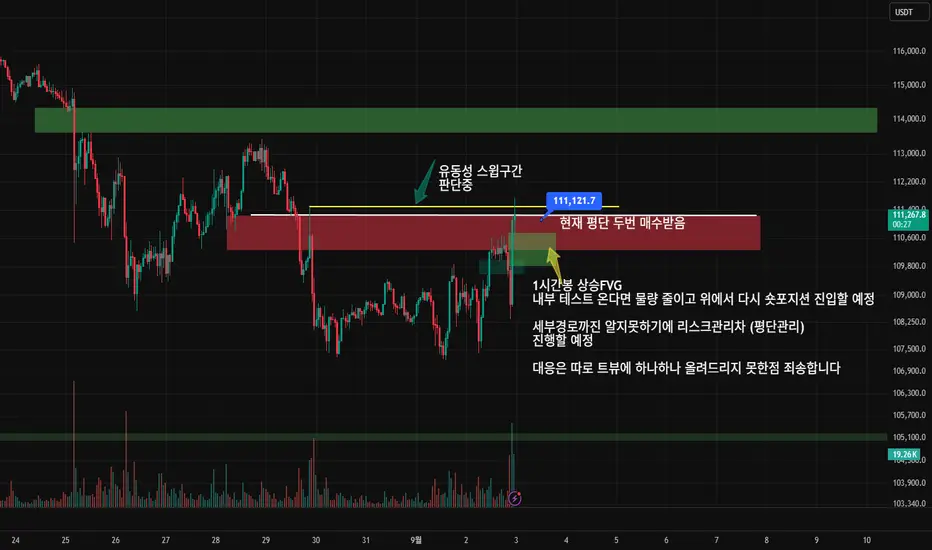 현재 110.2~111.3k 부근 두번 숏포지션 진입 했습니다.