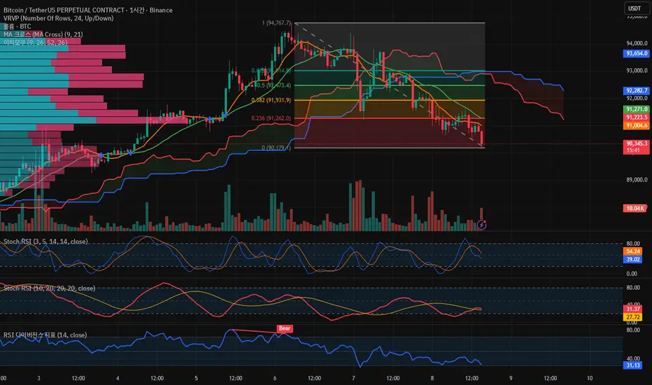 비트코인은 95K 부근에서 숨 고르기 이후 91K까지 밀렸고,