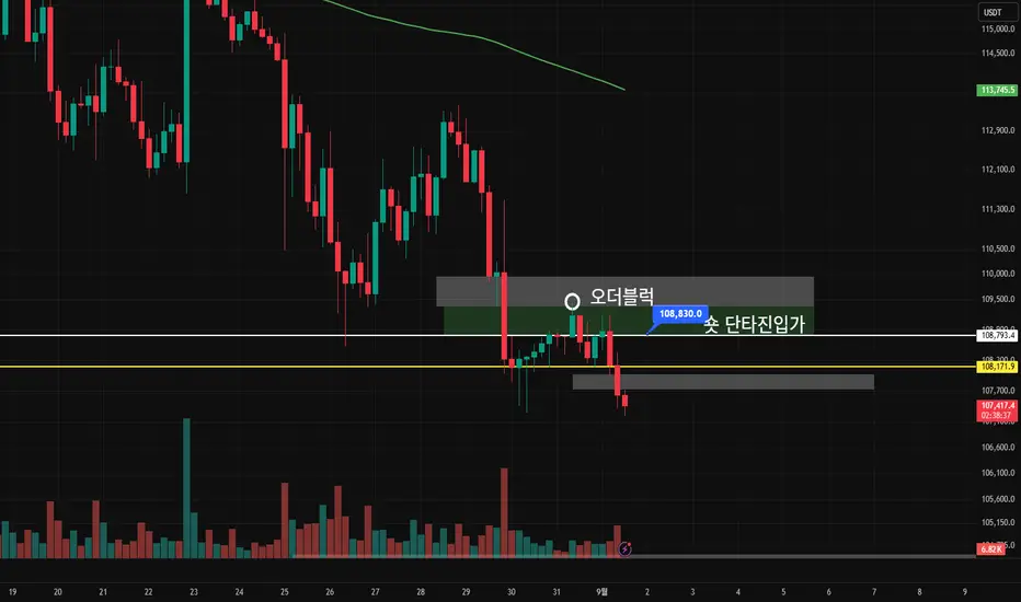윗구간 (단타 숏진입한 구간+ 오더블럭) 구간은 쉽게 뚫을것으로 예상하고