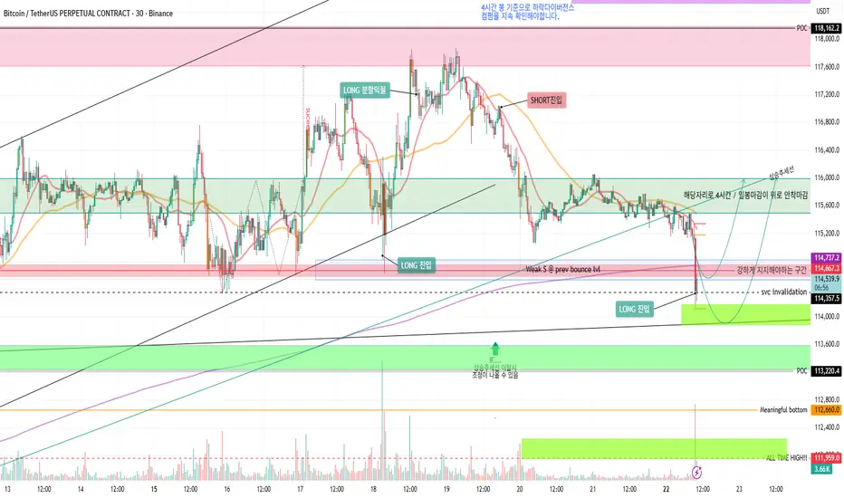 114.3K 부근(리퀴데이션+4H 200EMA)에서 스윕 후 즉시 회수 패턴이면 리스크-리워드 양호