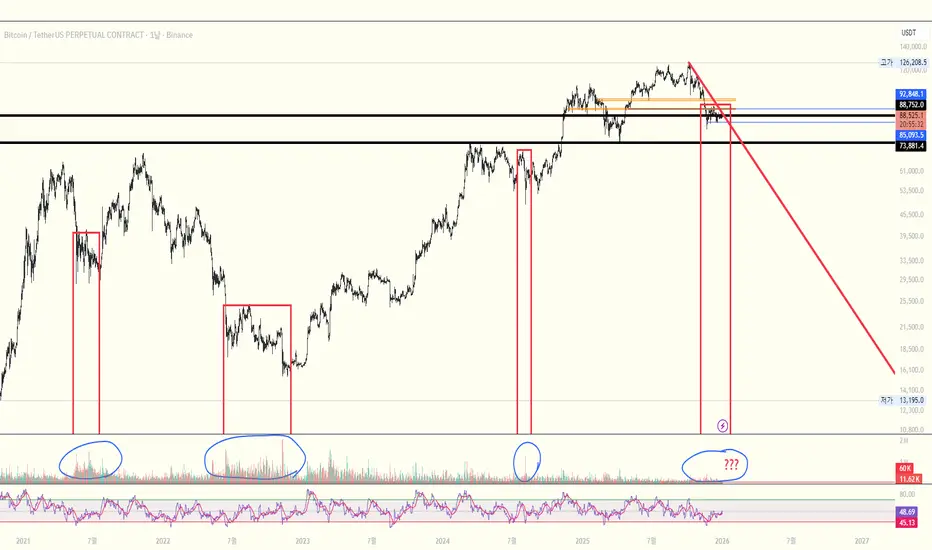 날봉 프레임 이동평균선은 여전히 역배열 상태에 있고 중기+장기 이평선들 모두 고개를 아래로 떨구고 있습니다.