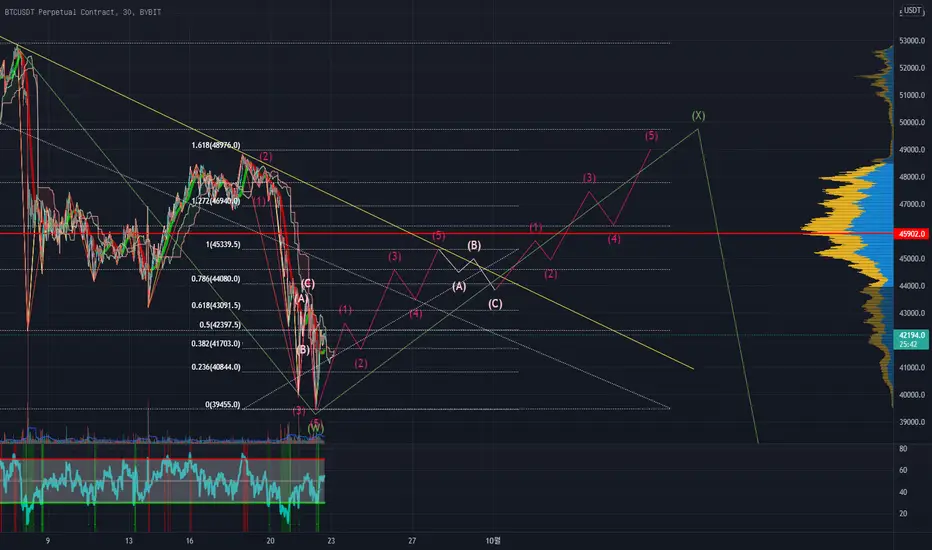 일단 4파동 종료 후 5파 올라가는지 X파동으로 단절 나버리고 하방으로 내려 갈껀지 확인해봐야 겠네요