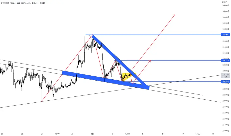 하단 파란색 트렌드를 유지한다는 조건하에 상승을 볼 수 있습니다.