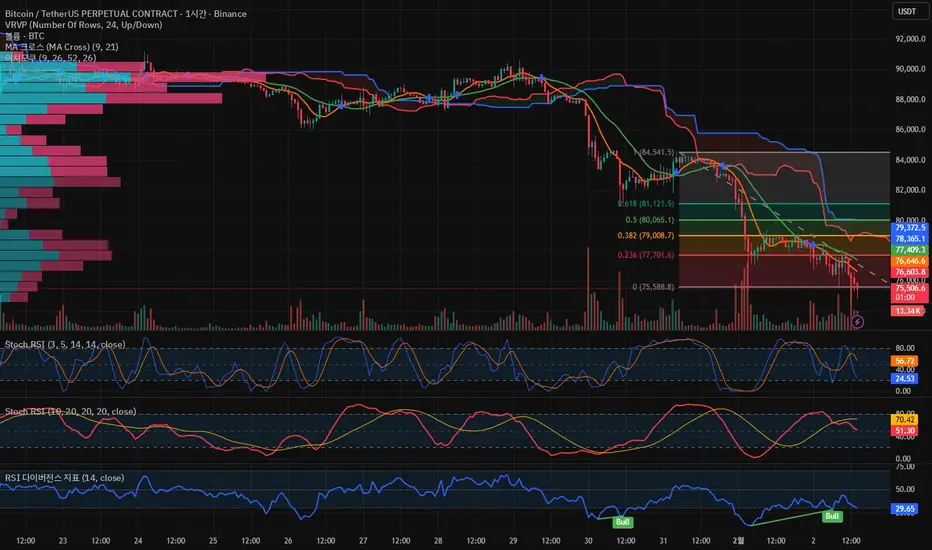 77,400 ~ 77,600 구간에서 숏 포지션 진입,