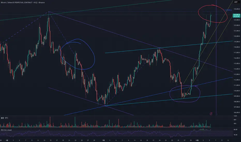 8월 14일의 고점을 갱신한다면 그후에 하락세가 나오더라도 85K까지의 하락 관점과는