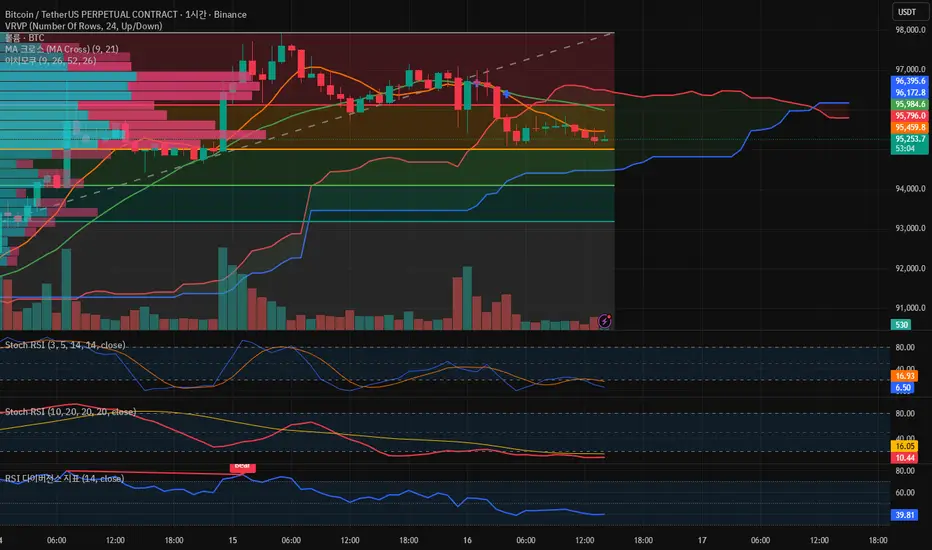 이평선은 약세(역배열 확대 가능)라 96.2K 회복 전까지 반등은 되돌림 성격이 강합니다.