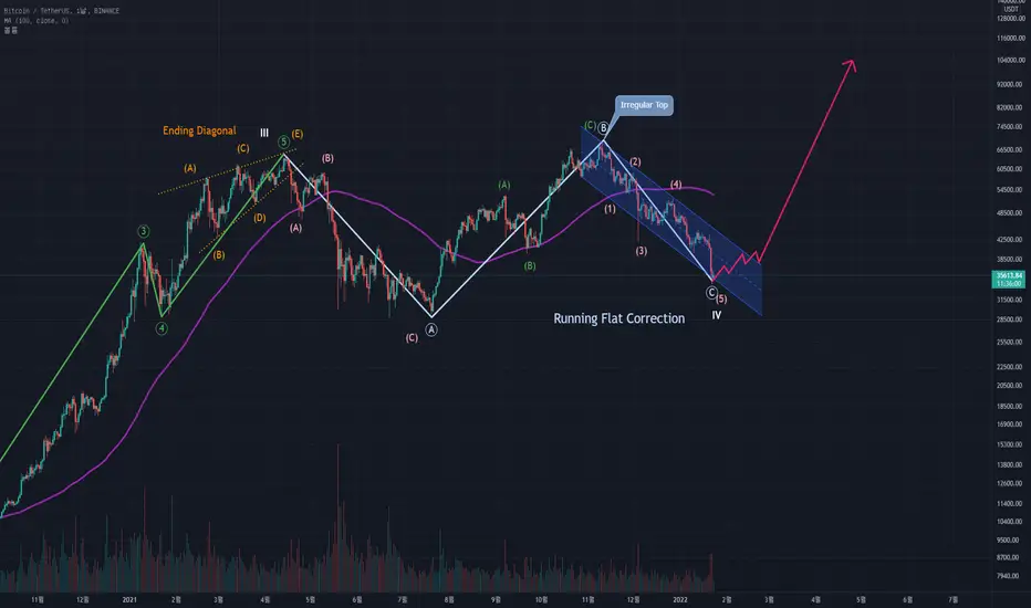C 파동이 현재 5개 파동으로 마무리 되어 앞으로 V 파동 충격(Impulse)이 시작될 가장 Bullish한 형태라 볼 수 있다.