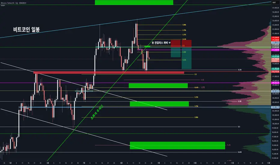 참고로 해당 구간은 초록색 추세선 리테스트와 각종 주요 매물대가 겹치는 자리입니다.