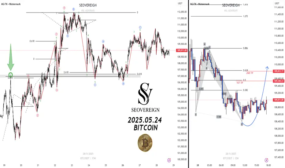 2025.05.27 저점인 107,540USDT 부근에서는 대표적인 하모닉 패턴 중 하나인 Bat 패턴이 컨펌되었습니다.