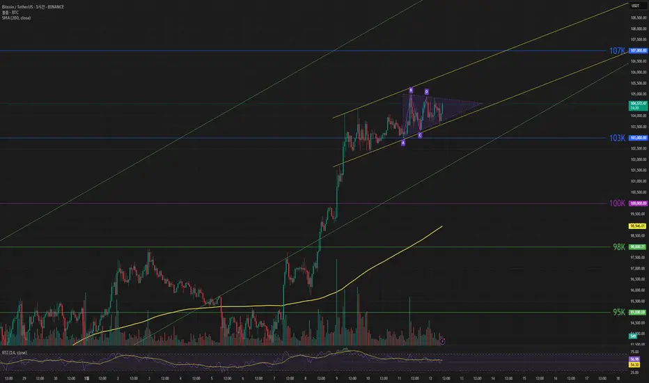 비트코인 가격은 102.5k 위로 오르며 약상승하며 105k 아래에서 횡보중입니다. 이대로 105k 위로 안착한다면 106k 까지 상승할 수 있을 것으로 보입니다.