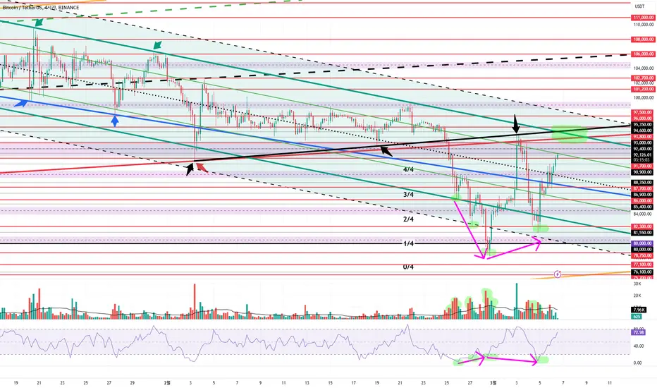 비트코인/USDT/바이낸스/현물/4시간봉 차트입니다