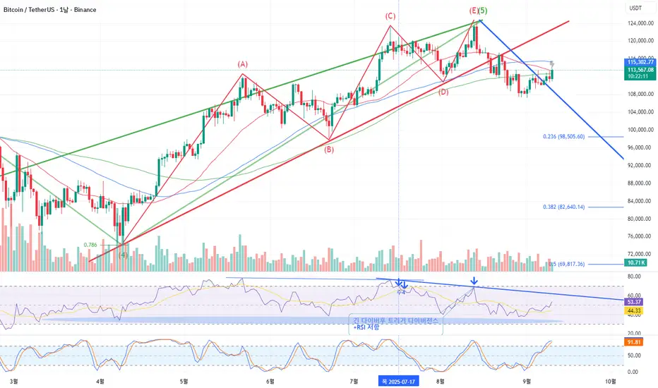 이전 하락시 RSI 아래 공간 다 안채우고 올라와 버려