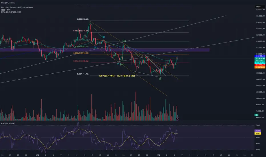 적어도 앞선 파동이 리딩이 아니라 ABC한파동이고, 지금이 B, 이후 C가 나와서 다시 115K쯤에서 하락하거나