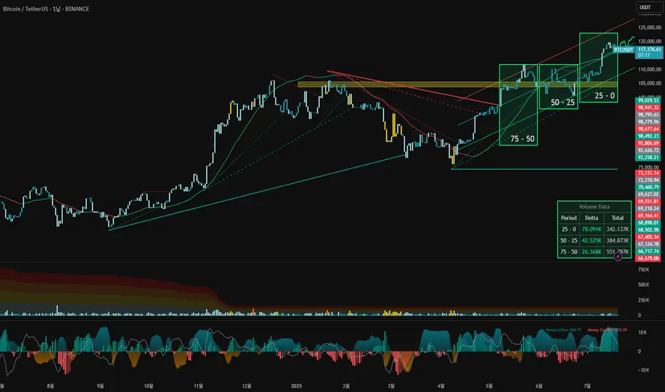 역사적으로 비트코인의 폭등 사이클은 평균 5~~7주 지속되고 그 이후엔 약 30~~40%의 중간 조정이 찾아왔어. 현재 비트코인은 이 상승장 주기의 2주 차 정도에 불과해. 2025년 8월 중순쯤 큰 변동성을 동반한 조정이 올 가능성이 높으니, 단기 투자는 조심하고, 조정장을 이용해 장기적으로 싼 가격에 비트코인을 더 담는 전략이 중요할 거야.