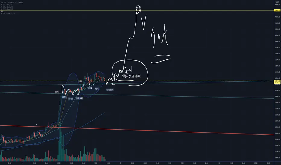 비트코인 월요일 70k 마감 시나리오 ( Touchx3 & Touch fail )