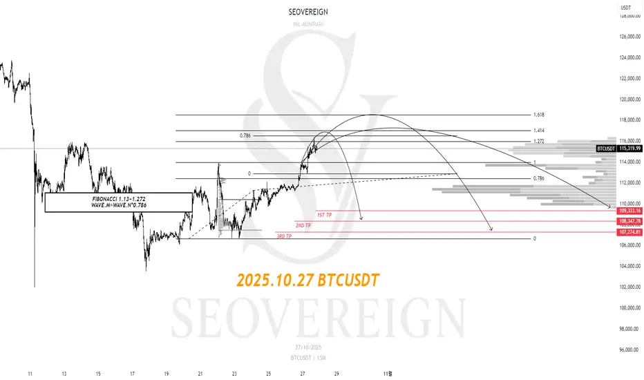 현재 비트코인은 상단 구조 대비 1.13~1.272 확장 구간에 위치해 있습니다.
