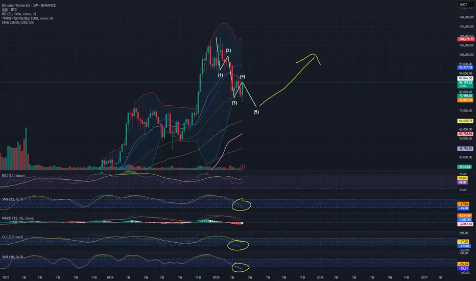 주봉상 하락 1~5파동이 다 나온것으로 보이고!