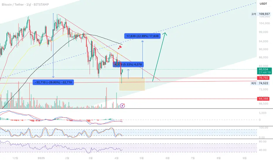 하락 추세 돌파한다는 관점으로 86K - 92K - 105K 타겟으로 진행하겠습니다.