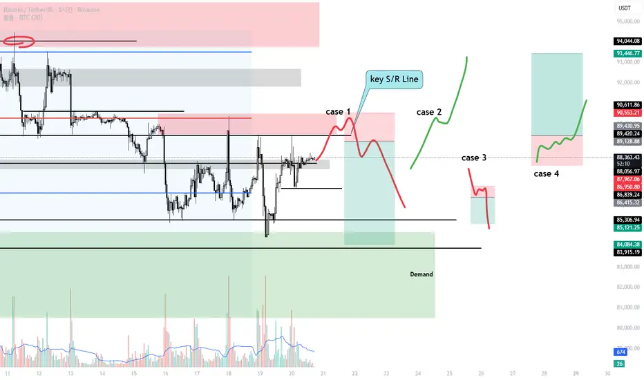 1의 경우는 유동성을 휩쓸고 급락이 발생하면 84k 아래까지 하락할 가능성이 높아집니다