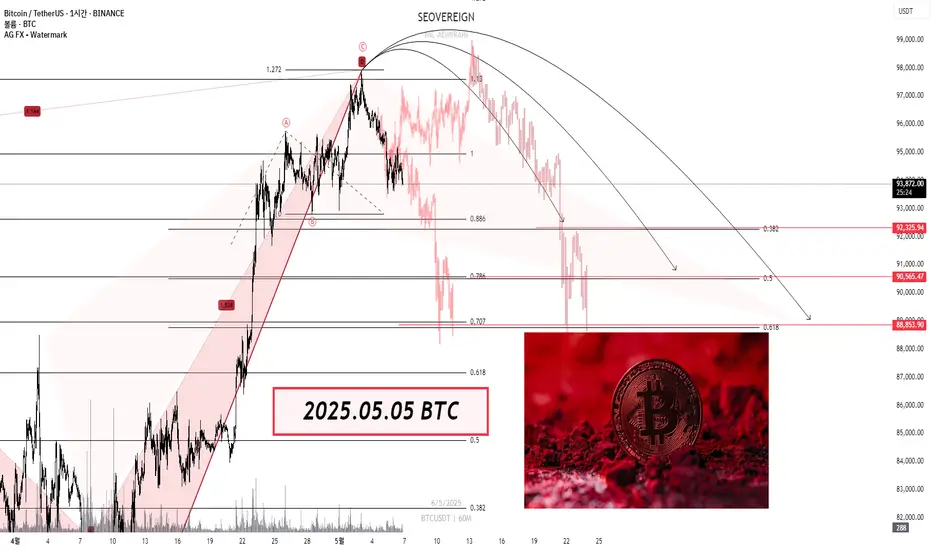 현재 파동 구조상, C파동이 A파동의 1.272배 비율로 마무리된 모습입니다. 이는 기술적으로 매우 명확한 파동 카운팅이 가능하다는 점에서 중요합니다. C파가 종결되었다는 전제 하에, 시장은 이제 새로운 파동의 시작점에 위치해 있으며, 이는 곧 단기적인 하락 추세로 전환될 가능성을 시사합니다.