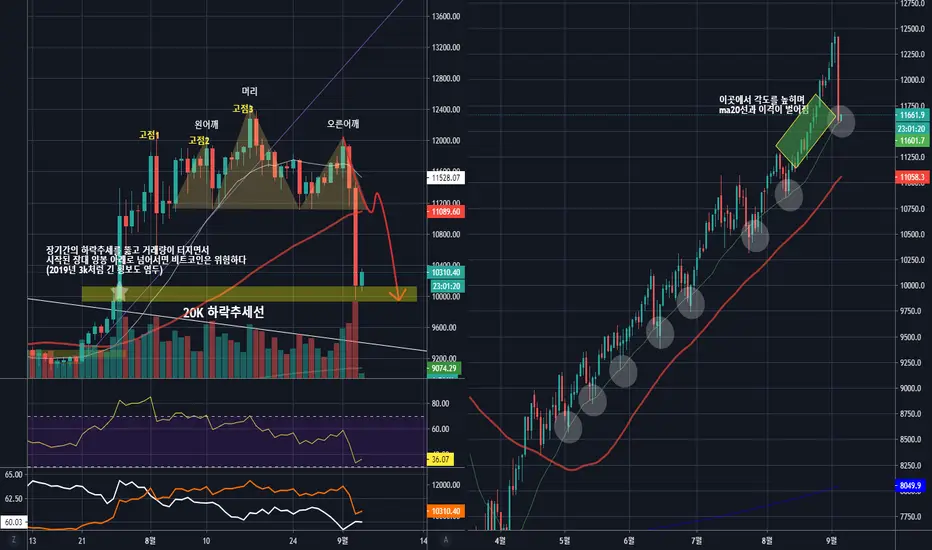 이전 관점에 올렸던 헤드엔숄더의 목표값에 얼추 도달하였습니다.