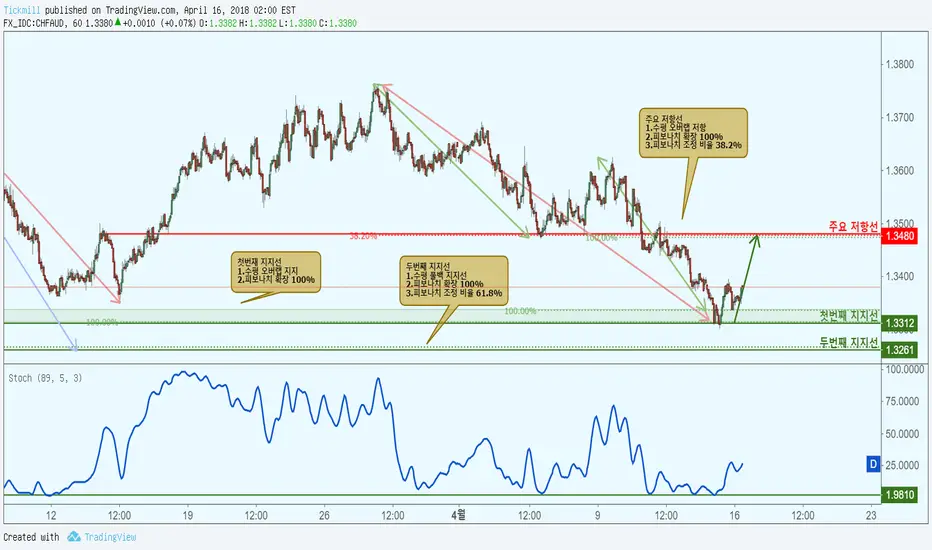 CHFAUD 는 첫번째 지지선 1.3312 가격 라인에 두번째 접근을 테스트하고 있습니다.