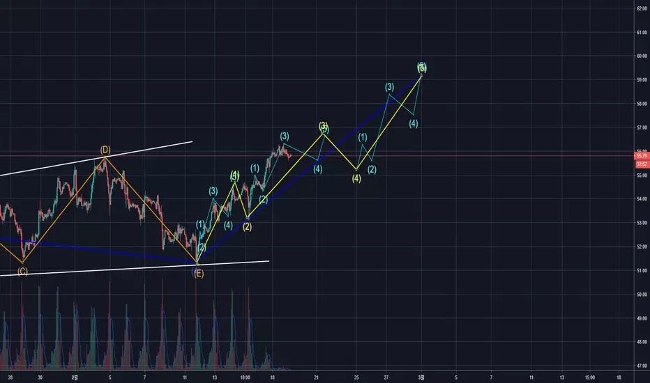 55.01을 깨지 않고 지지받고 상승한다면 4파조정 완료로 보고 5파상승을 기대해 볼 수 있을 것 같습니다.
