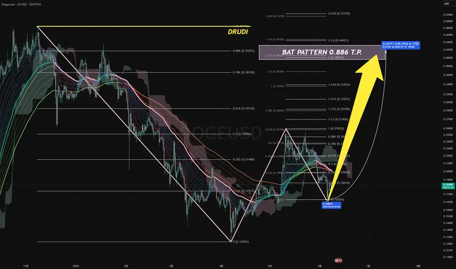 즉, 하모닉 뱃 패턴에 의거하면 도지코인은 현재가 대비 2배 이상 오른다는 이야기입니다.