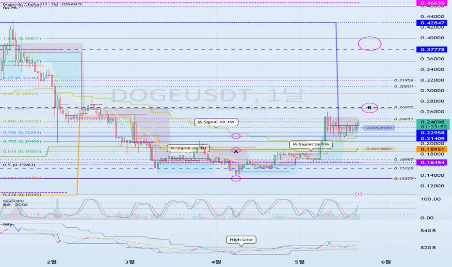 0.24651 이상 상승하게 되면, OBV와 StochRSI 지표가 돌파 매매 조건에 부합하는지를 확인해야 합니다.