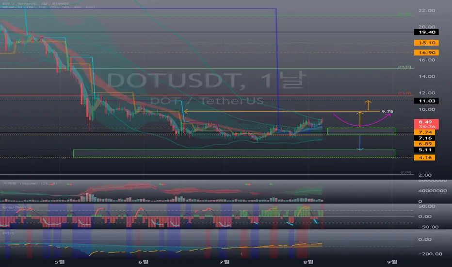 이때, 6.89-7.74 구간에서 지지 받는지 확인해야 합니다.