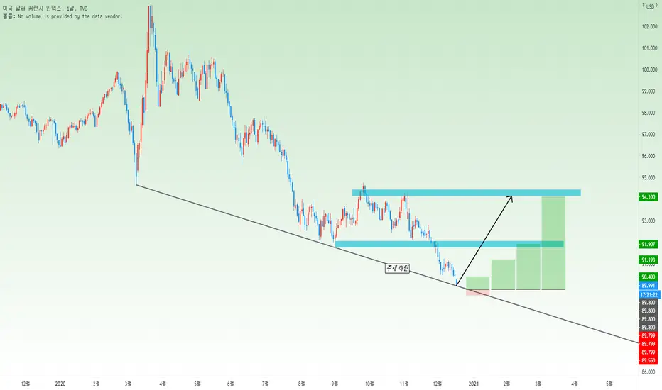 하락 추세안에 있는 달러입니다.