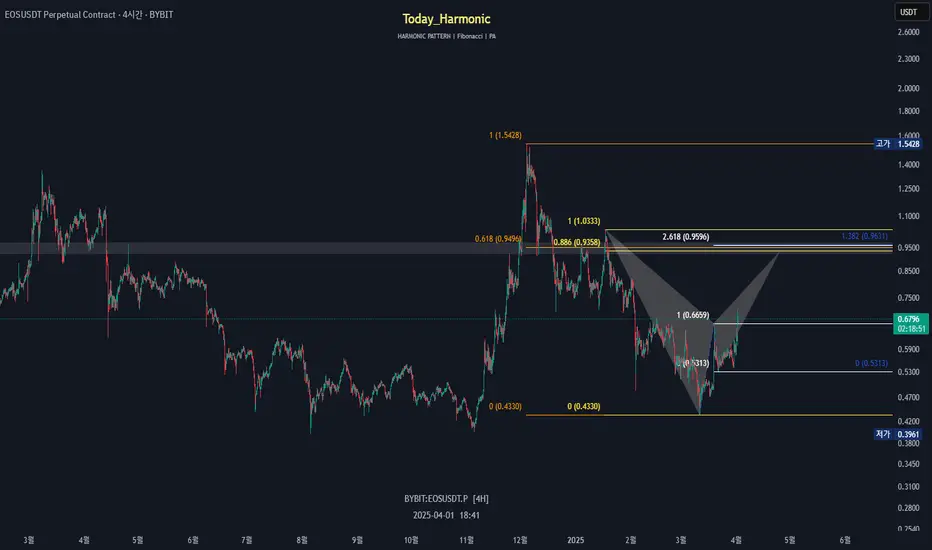 뱃 패턴의 PRZ로, 반전 가능성이 있는 저항 구간입니다.