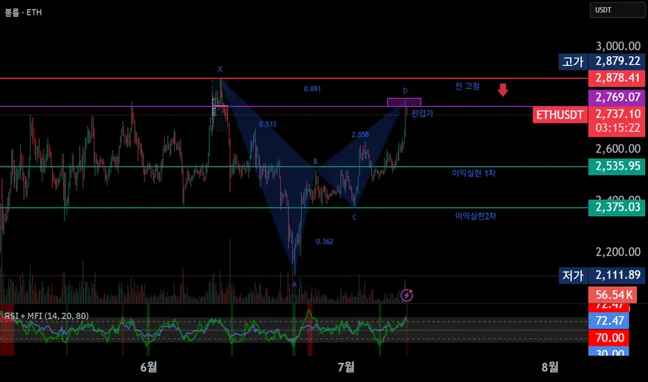 현재 4시간봉에서 하모닉 박쥐 패턴을 포착하였습니다.