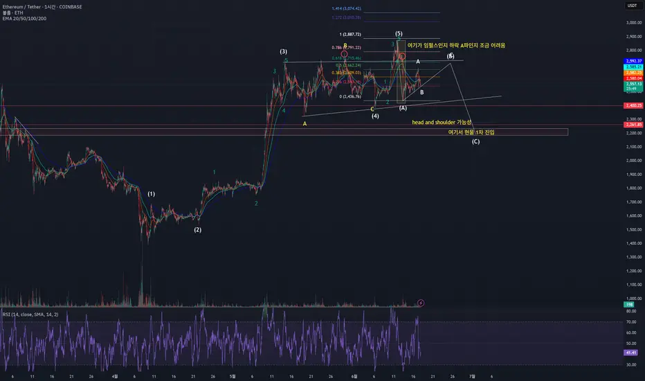 이더리움은 카운팅을 어떻게 하든지 간에 임펄스 1파동이 끝났다.