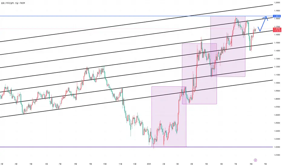 최근 급락 이후 반등에 성공하면서 1.17000 라인까지 상승이 이뤄졌으며, 이는 곧 상승 모멘텀이 이어지고 있음을 보여주고 있습니다. 다만, 상단에 1.18300 라인 저항이 있어 해당 구간을 돌파하는지를 확인한 이후 상승뷰를 확정할 수 있겠습니다. 만약, 1.18300 라인을 돌파한다면 1.21000 라인까지의 상승세가 이어질 가능성이 높습니다.